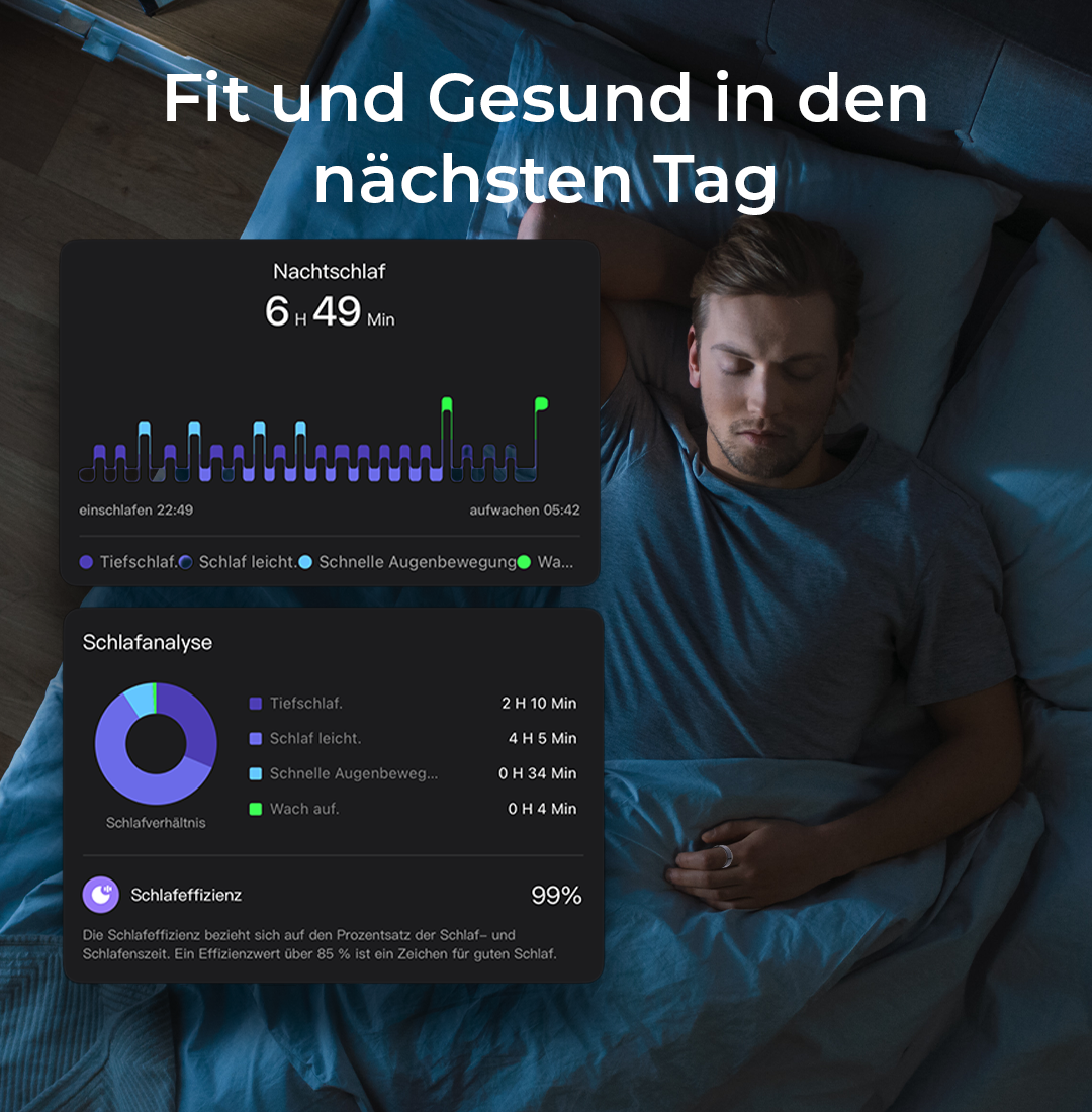 ✅ Schlaftracking: Erfahre genau, wie gut du schläfst – inkl. Tiefschlafphasen, Einschlafdauer & Schlafqualität.